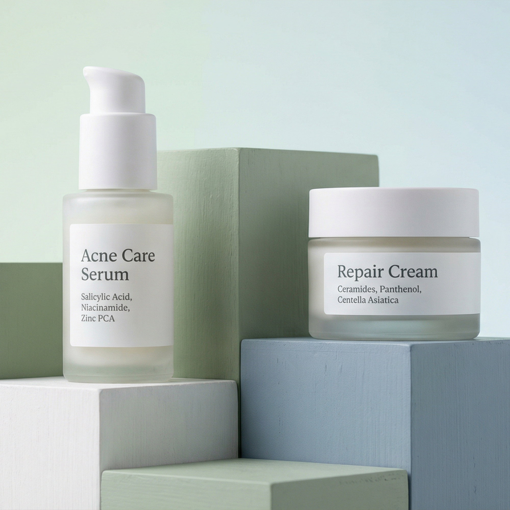 Professional dermacosmetic OEM manufacturing including acne care, whitening and anti-aging skincare solutions for global clinic and treatment brands.