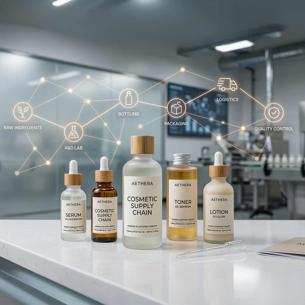 Supply chain coordination solutions connecting cosmetic brands with international manufacturing, formulation, and packaging partners.