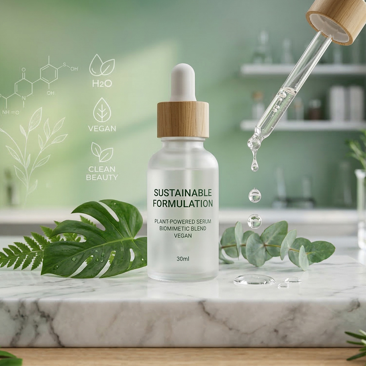 Eco-conscious cosmetic formulation focused on sustainable ingredients and environmentally responsible product development.